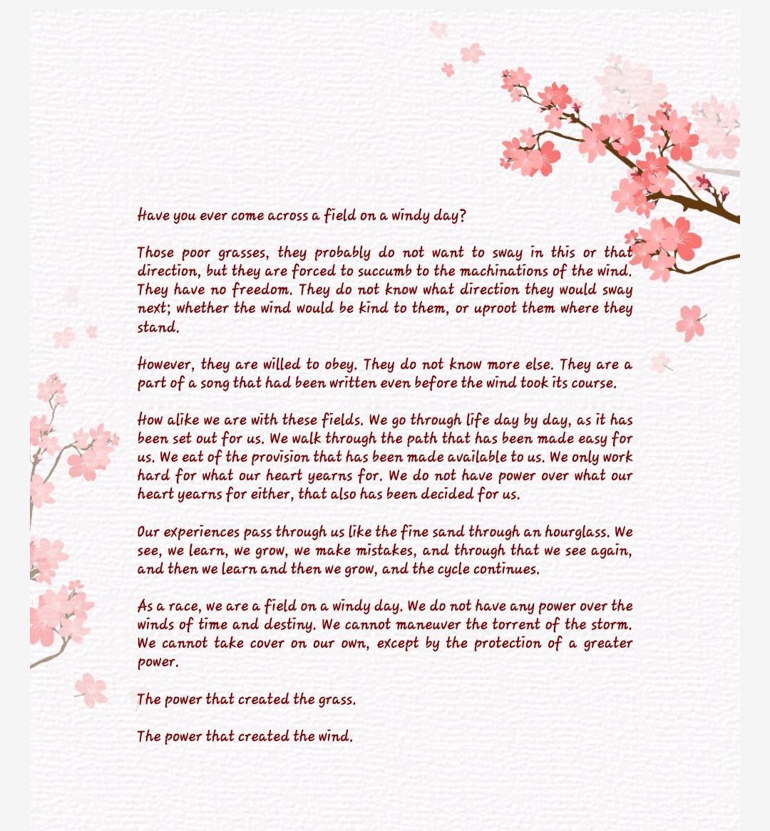 Many believe that we have a particular set of events that are a fated part of our journey in life, but do not believe in the power that ensures that these events unfold at their perfect time.